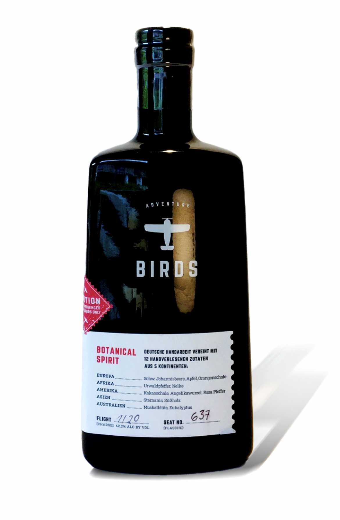 BIRDS Adventure Botanical Spirit is a non-alcoholic alternative to traditional gin, offering a complex flavor profile without the presence of juniper. Crafted from distilled Riesling wine, it features a blend of botanicals that impart a fresh and aromatic character. The spirit is designed to be versatile, serving as an excellent base for various cocktails or enjoyed simply with tonic water.
