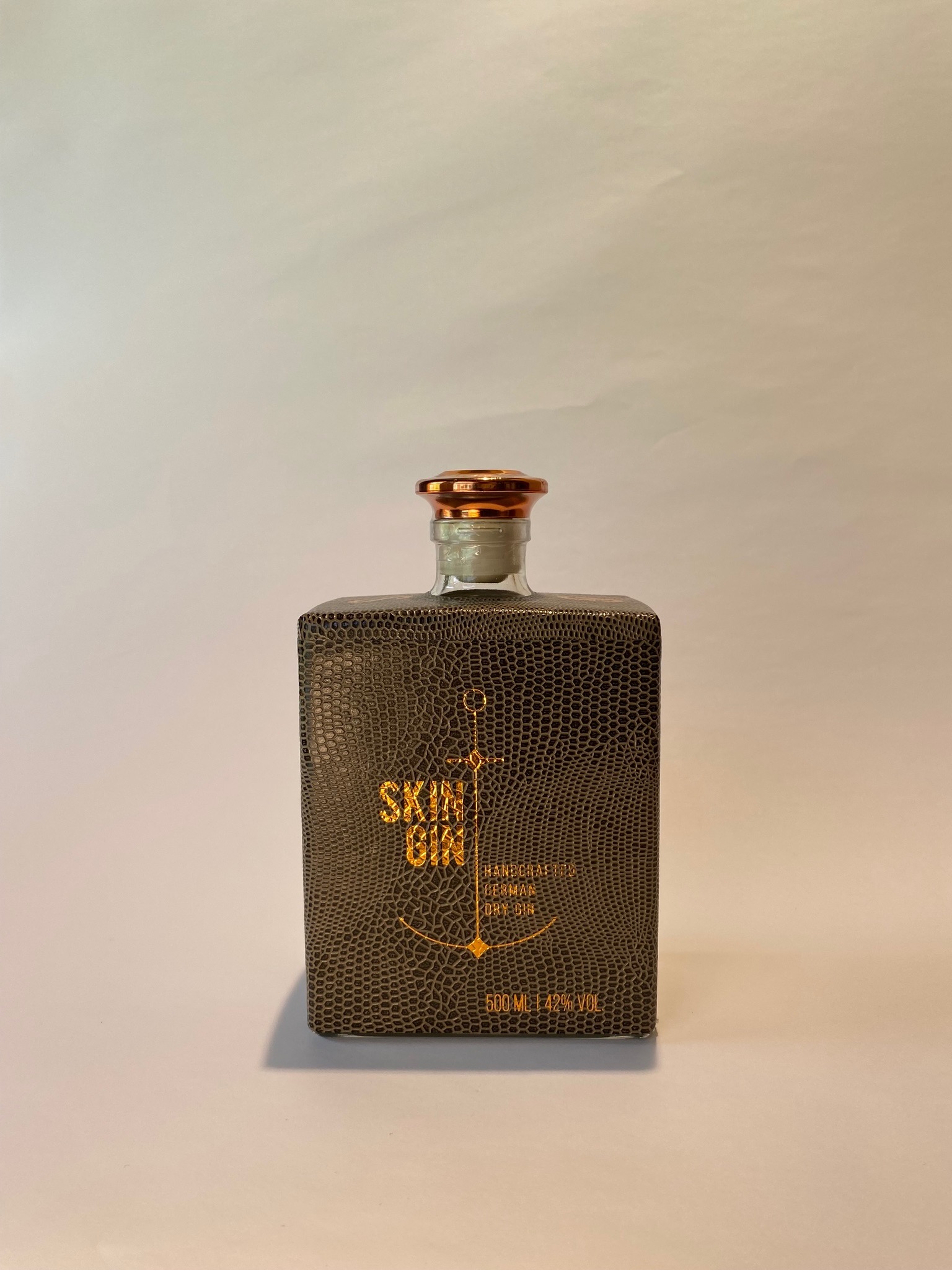 The gin is produced in small batches using traditional distillation methods near Hamburg, Germany. Each bottle is individually hand-wrapped in a fine brown snakeskin look, with copper-colored embossing, adding a touch of elegance to its presentation.