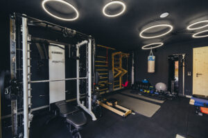 Bestens ausgestattetes Fitnessstudio mit Rudergerät, Laufband, Pendelton, Boxsack, Sprossenwand, Battle Rope, Hanteln und diverse Gewichte und Hantelbank, Yoga Ausstattung inkl. Getränke